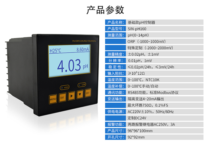 SIN-pH160是工業(yè)pH計(jì),是工業(yè)酸度計(jì)的智能化升級(jí)產(chǎn)品,可對(duì)污水pH值進(jìn)行連續(xù)測(cè)量和控制。